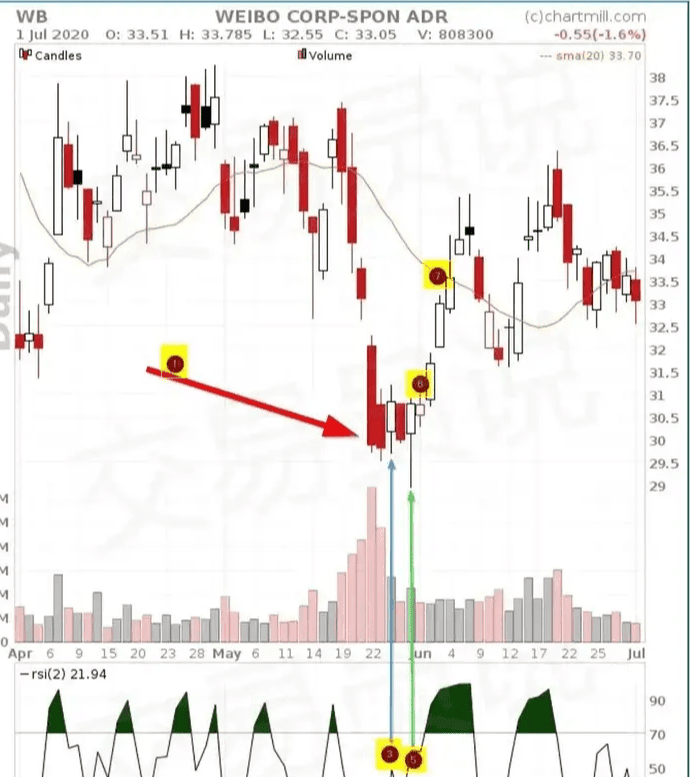 4. RSI(2)再次回落至30以下