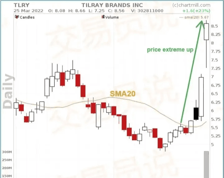 1.价格极端向上,价格显著偏离SMA20