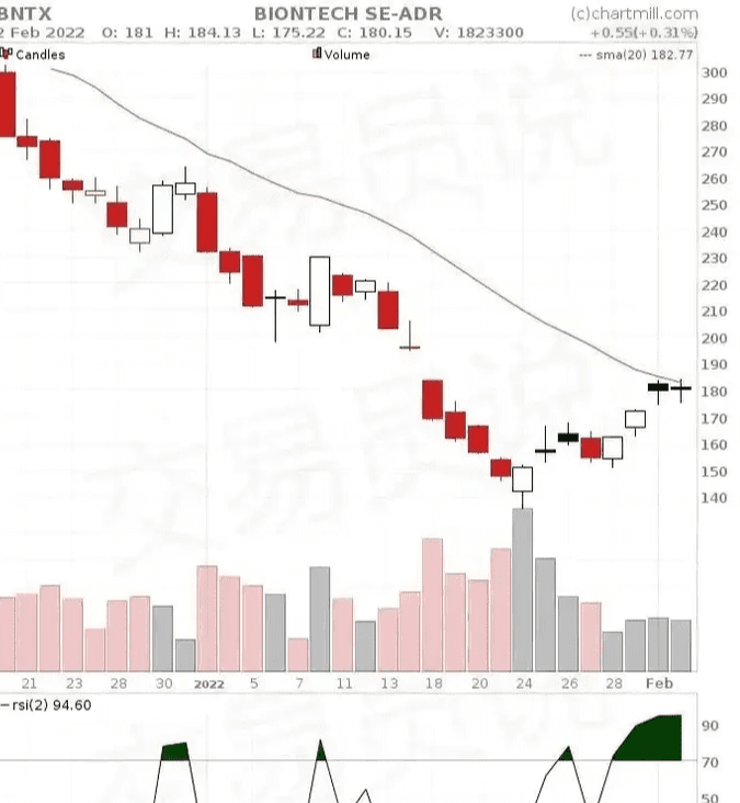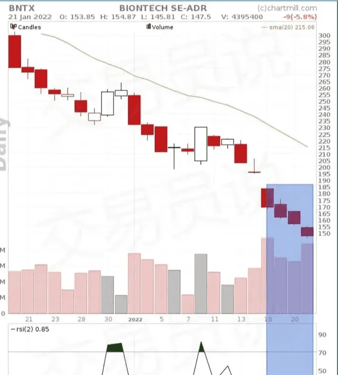 至于BNTX,我们观察到从2022年1月18日到1月21日,RS(2)低于10。