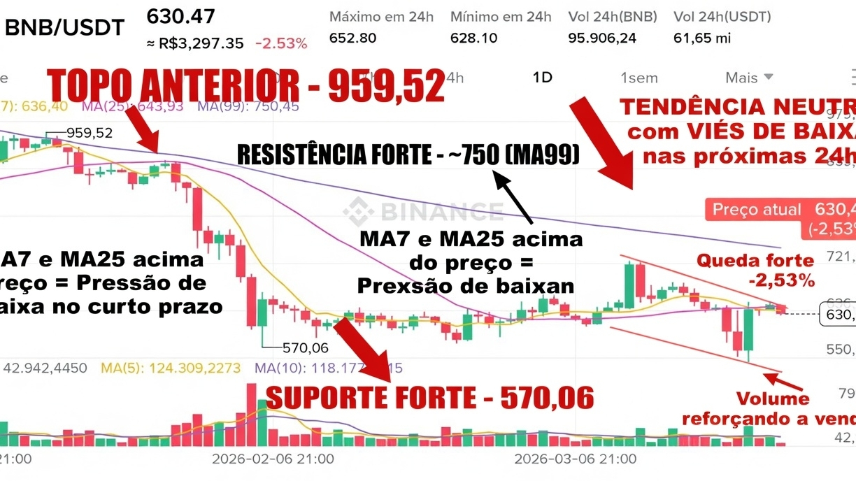 - BNB perdeu força hoje e fechou abaixo da MA(7) e da MA(25) â sinal clĂĄssico de pressĂŁo vendedora no curto prazo.