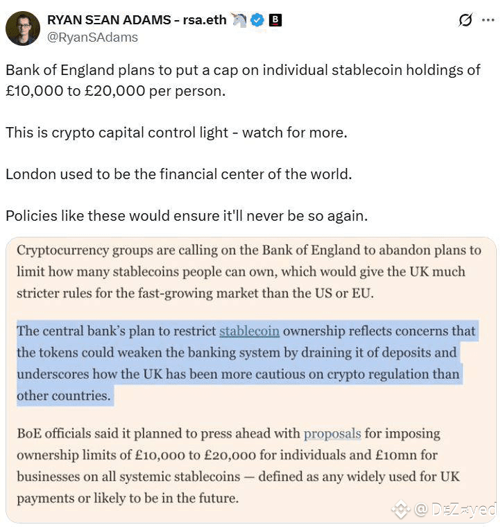 🚨 JUST IN: The Bank of England said its planned $ 13K–$ 27K limits on stablecoin holdings are temporary measures to ensure stability during the transition.