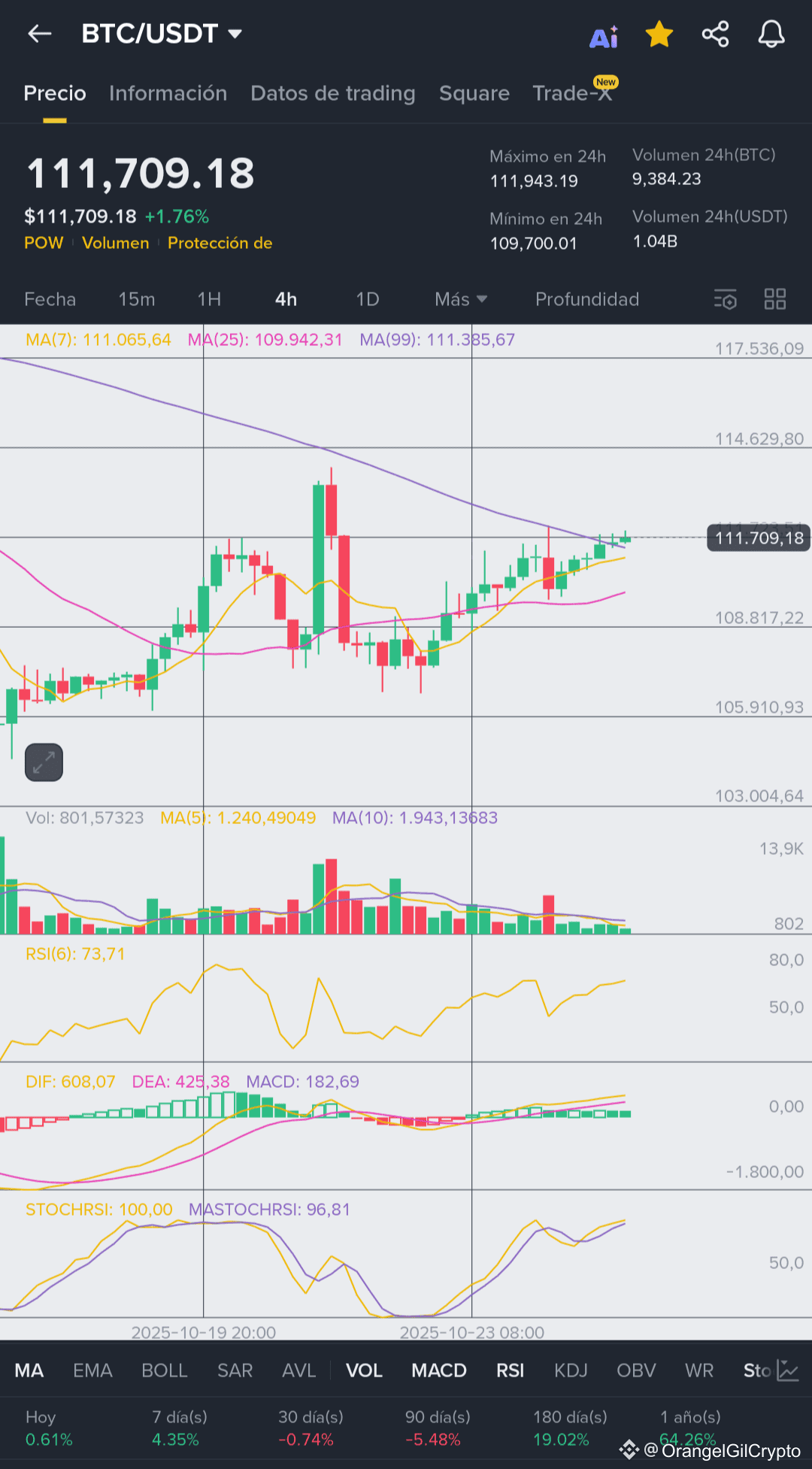 At press time, Bitcoin (BTC/USDT) trades at $111,709.18, marking a 1.76% intraday increase, with a 24-hour high of $111,943.19 and a low of $109,700.01. Market volume remains robust, exceeding 9,384 BTC traded within the last 24 hours, according to Binance Market Data.