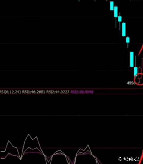 死叉又出现超买,当RSI在40-60之间出现死叉时,对行情不具备指导意义。(如下图所示)