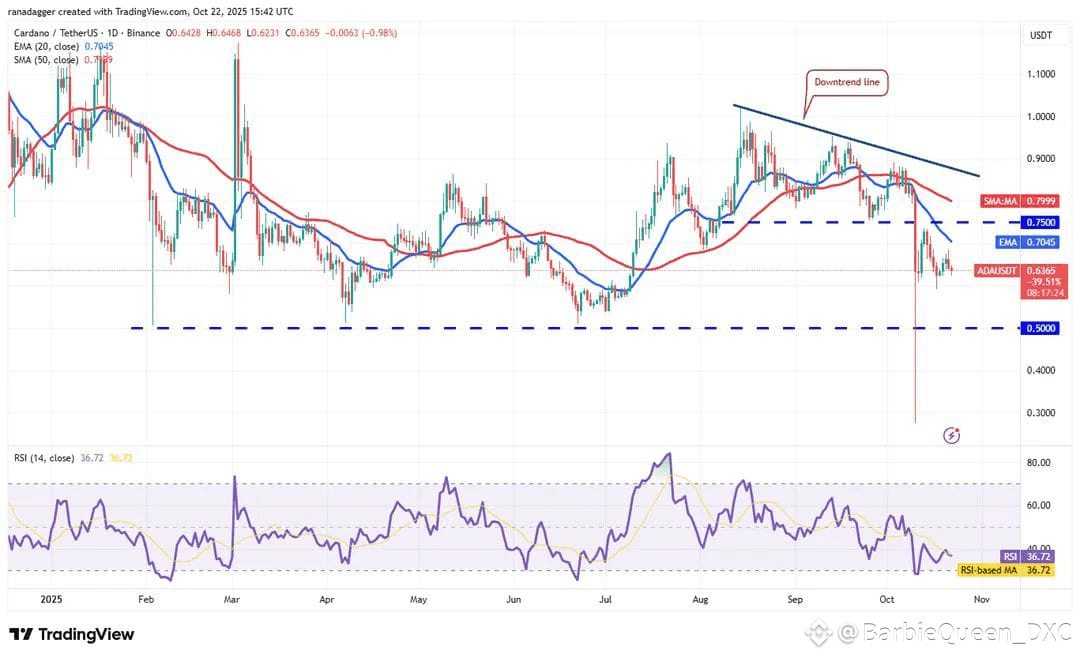 ADA has dipped slightly to $0.6354, meaning that it’s down by 6.5% in a week and by 22% in 30 days.