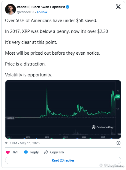 Vandell Aljarrah, đồng sáng lập của Black Swan Capitalist, đã đưa ra một tuyên bố cảnh báo về khả năng tiếp cận XRP trong bối cảnh lo ngại ngày càng tăng về bất bình đẳng tài chính ở Hoa Kỳ. Theo Aljarrah, một bộ phận lớn người Mỹ có thể bị bỏ lại phía sau khi việc áp dụng tiền điện tử tăng tốc, đặc biệt là do tiền tiết kiệm cá nhân hạn chế.