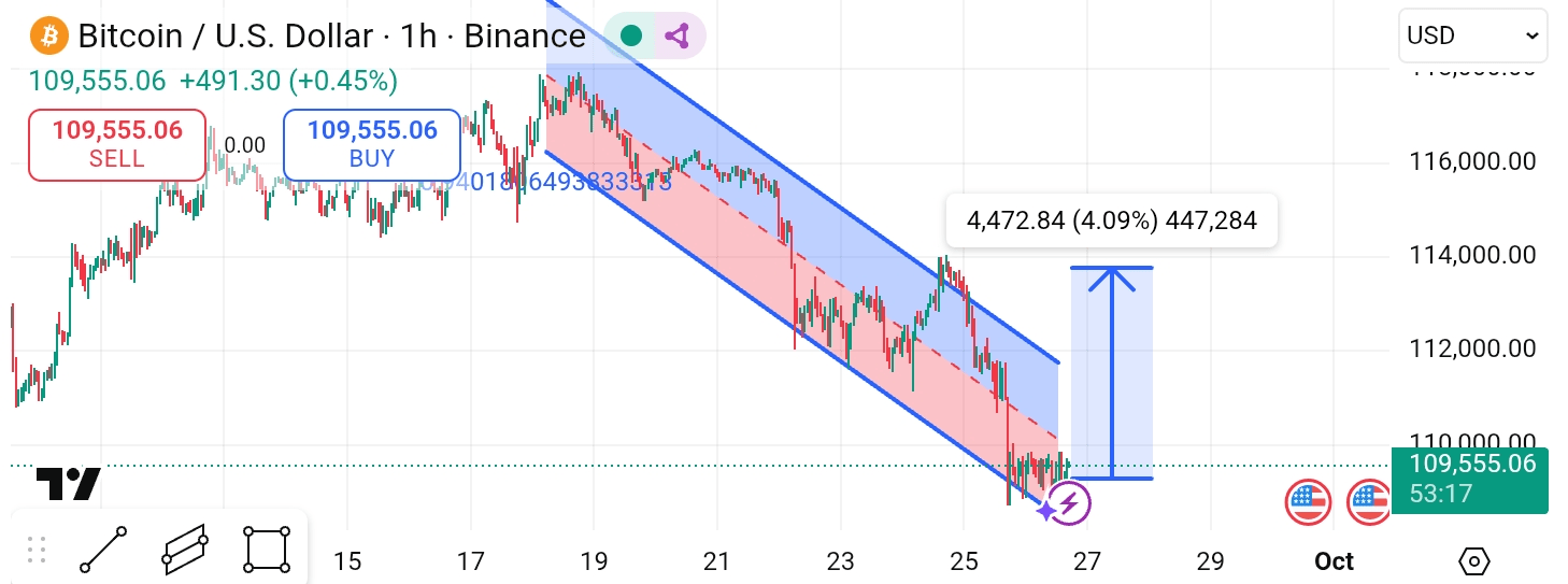 Mô hình: Tích lũy xu hướng tăng (Giao dịch trong phạm vi hẹp dưới mức kháng cự 110,000)