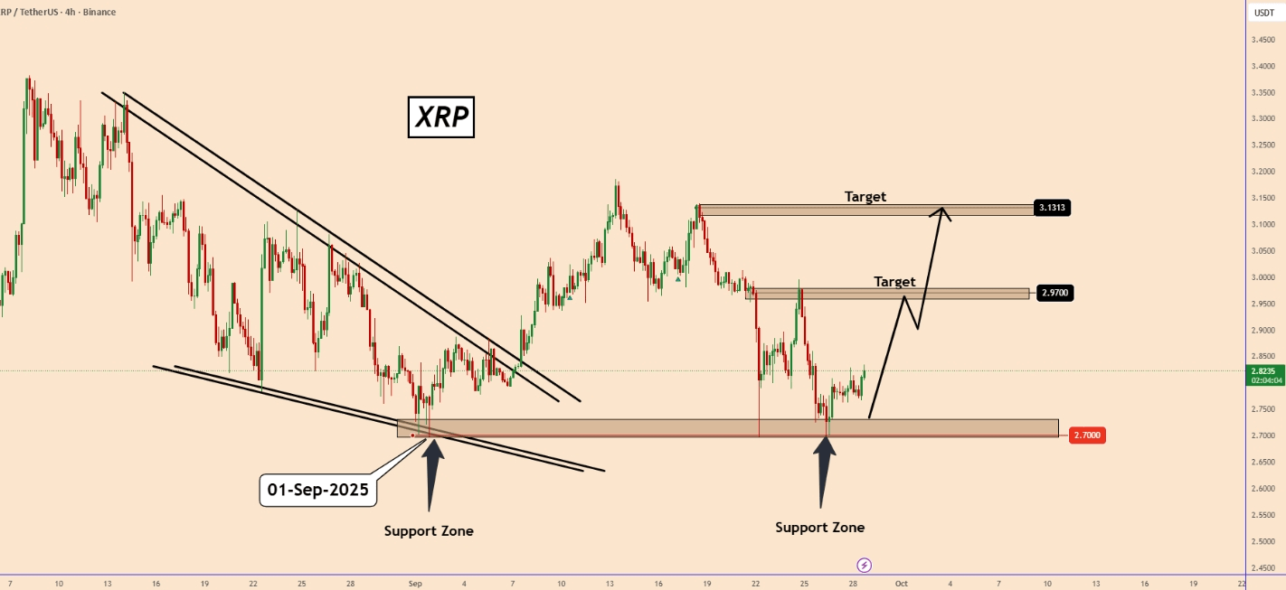 Nếu động lực tiếp tục, mục tiêu tiếp theo là khoảng 3.13, cũng tương ứng với một vùng cấu trúc mạnh nơi XRP đã bị từ chối trong những ngày trước.