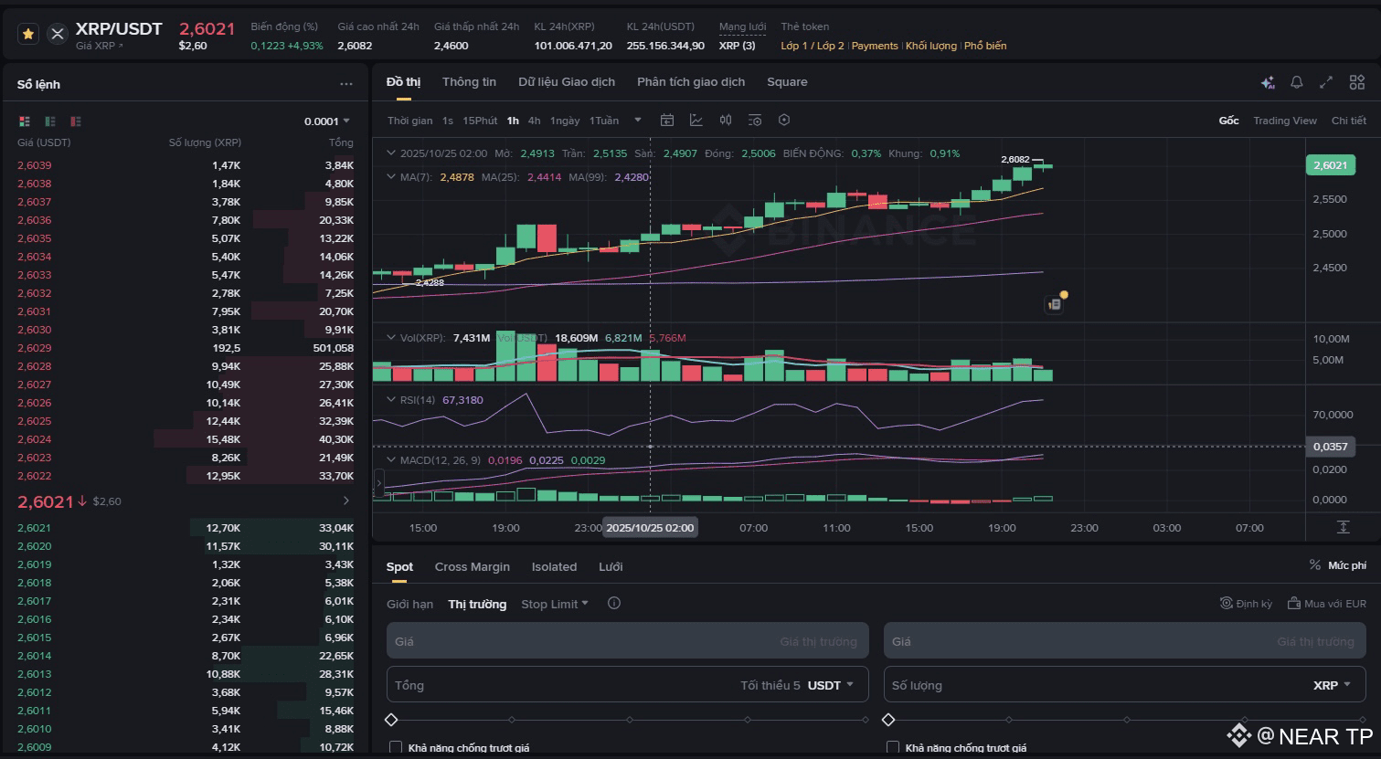 Nếu XRP giữ trên 2.58–2.60 và volume duy trì >6M/h → có thể hướng lên vùng 2.64–2.68