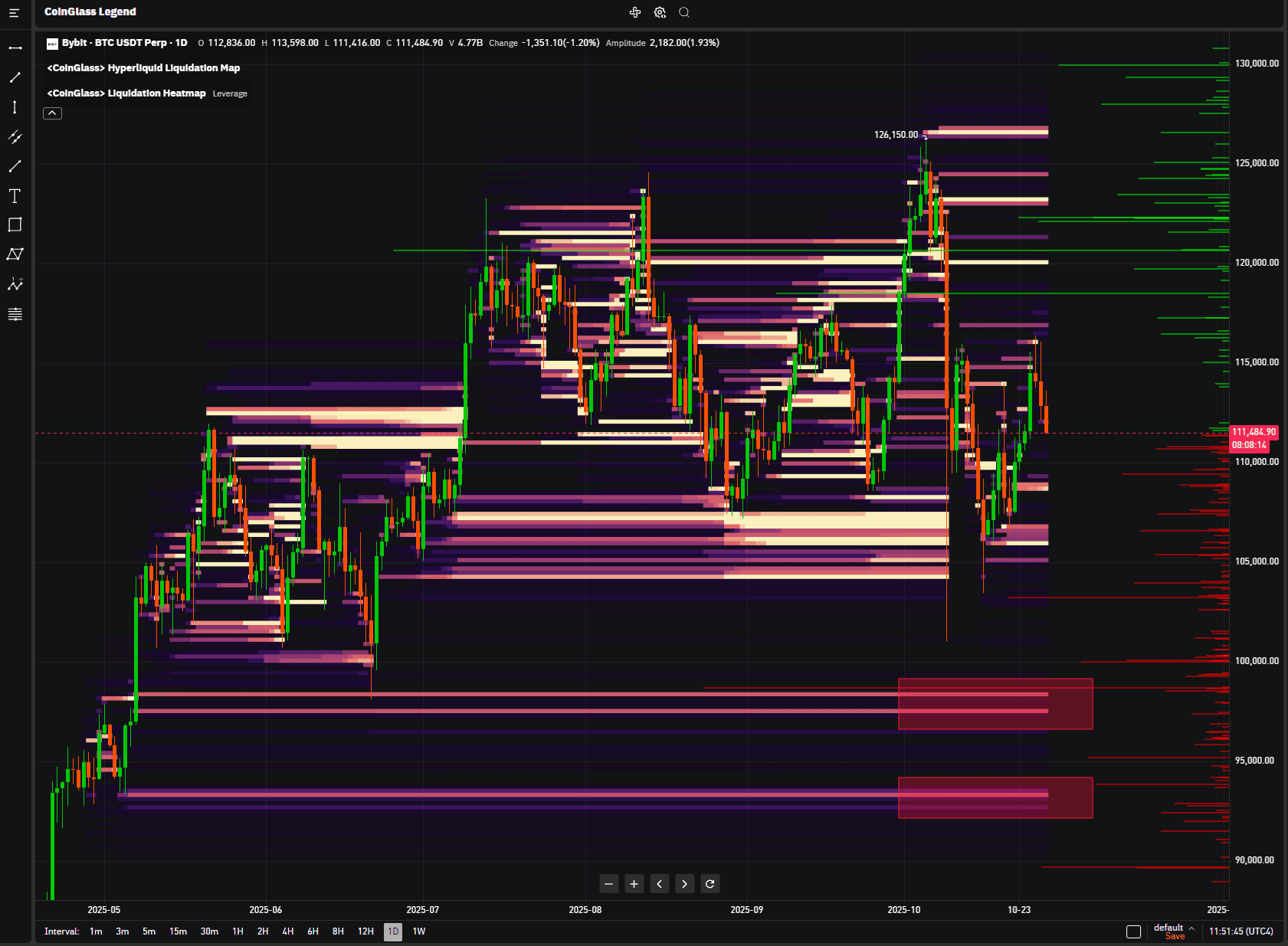 ➖ Biểu đồ từ Coinglass Legend, cho thấy những đợt thanh lý trader dài đang tích tụ dưới mức $93k đến $98k trên sàn Bybit. Tôi đoán họ sẽ làm sạch thanh khoản đó trước khi chúng ta tăng giá.