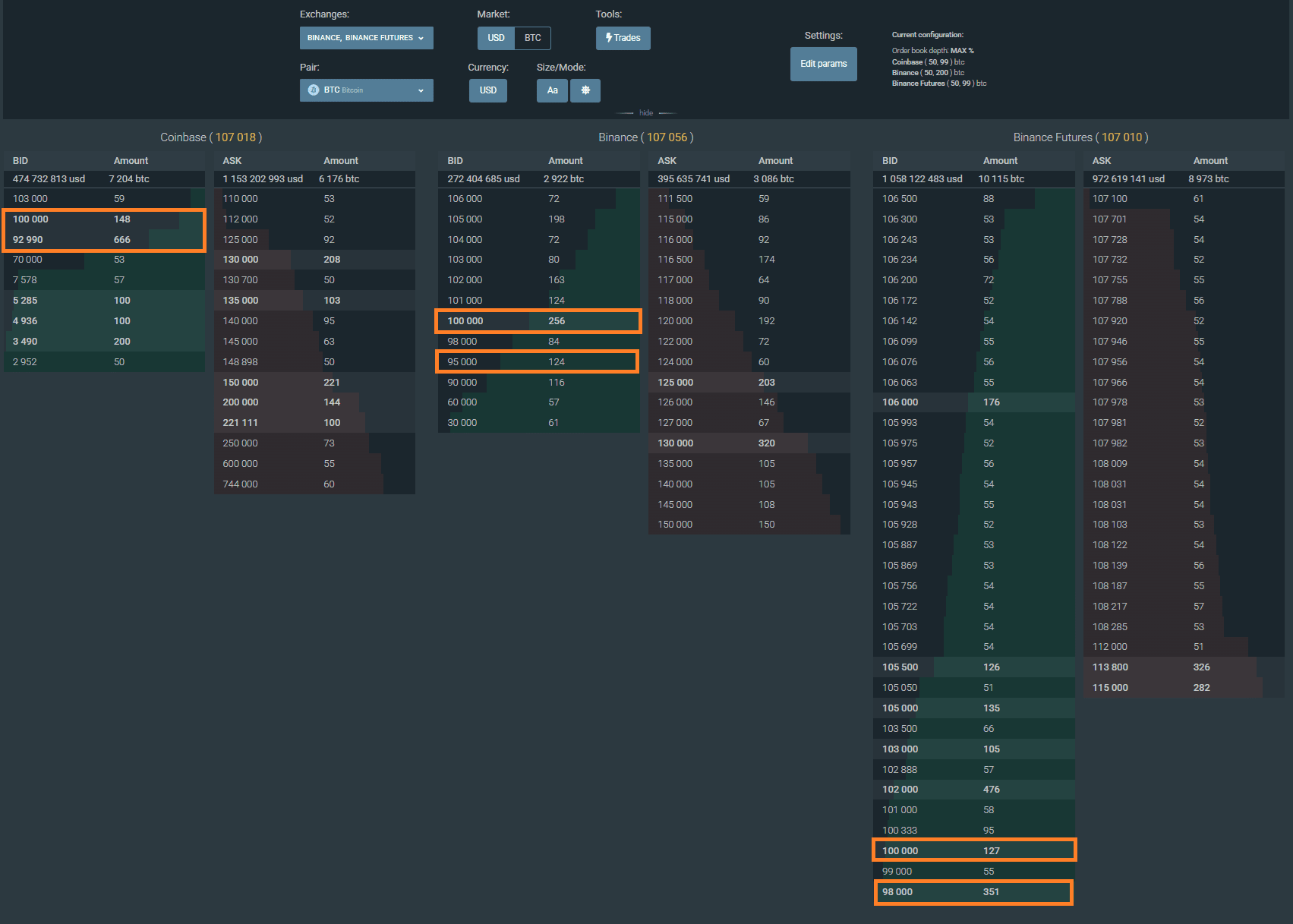 ➖ Cụm đơn hàng lớn ngay gần sàn giao dịch tiền điện tử Coinbase ở mức 93k và 100k, điều này củng cố khu vực này như một điểm nóng. Tiền của cá voi đang đổ vào, một phần là do mua lại những đợt thanh lý của các trader.
