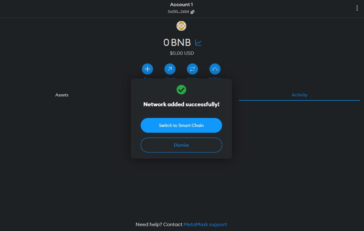 Bây giờ hãy kết nối với mạng lưới Binance Smart Chain thông qua ví của chúng tôi: