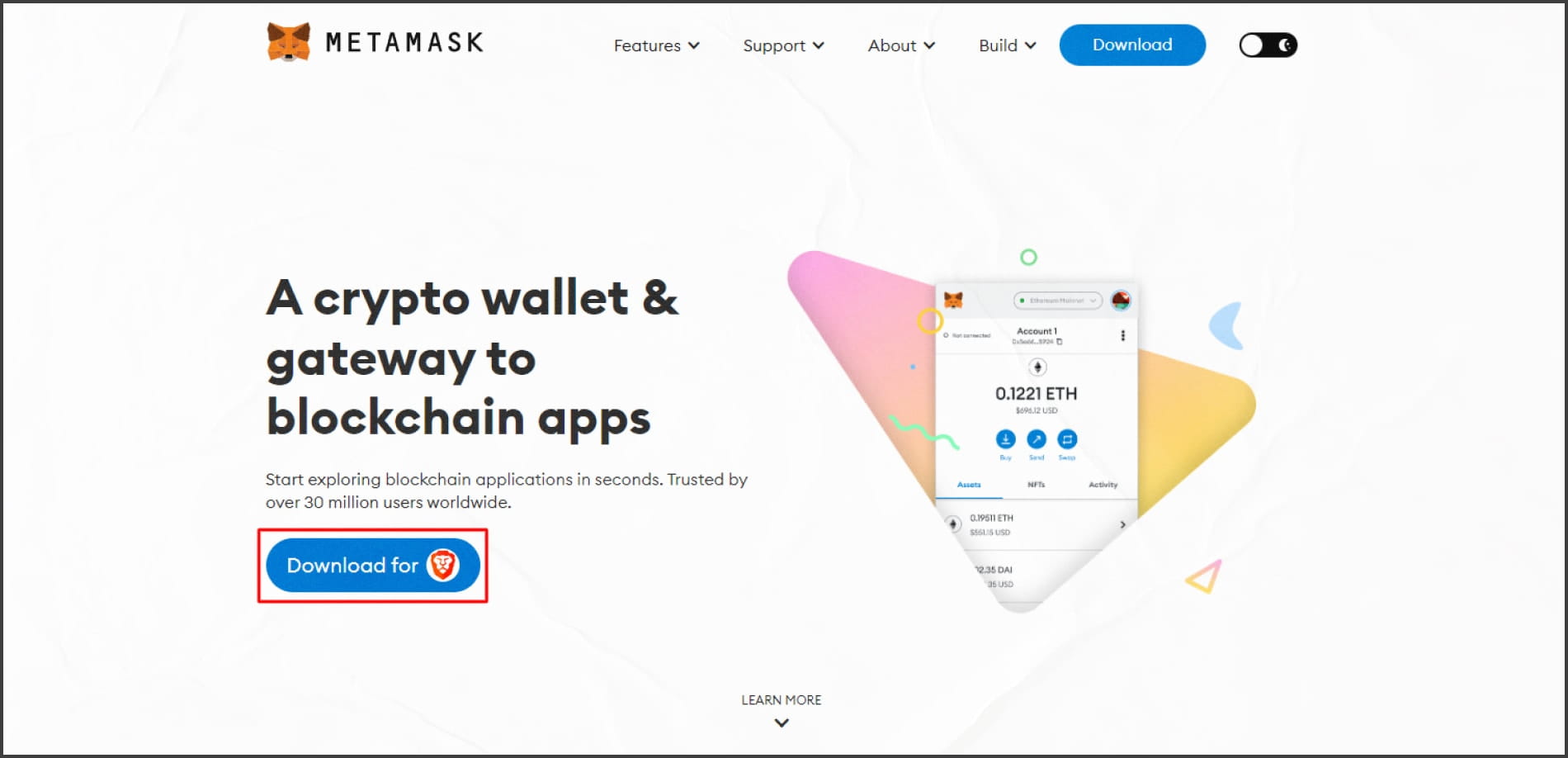 Mở trang metamask và trên trang chủ nhấp vào Tải xuống cho "trình duyệt của bạn":