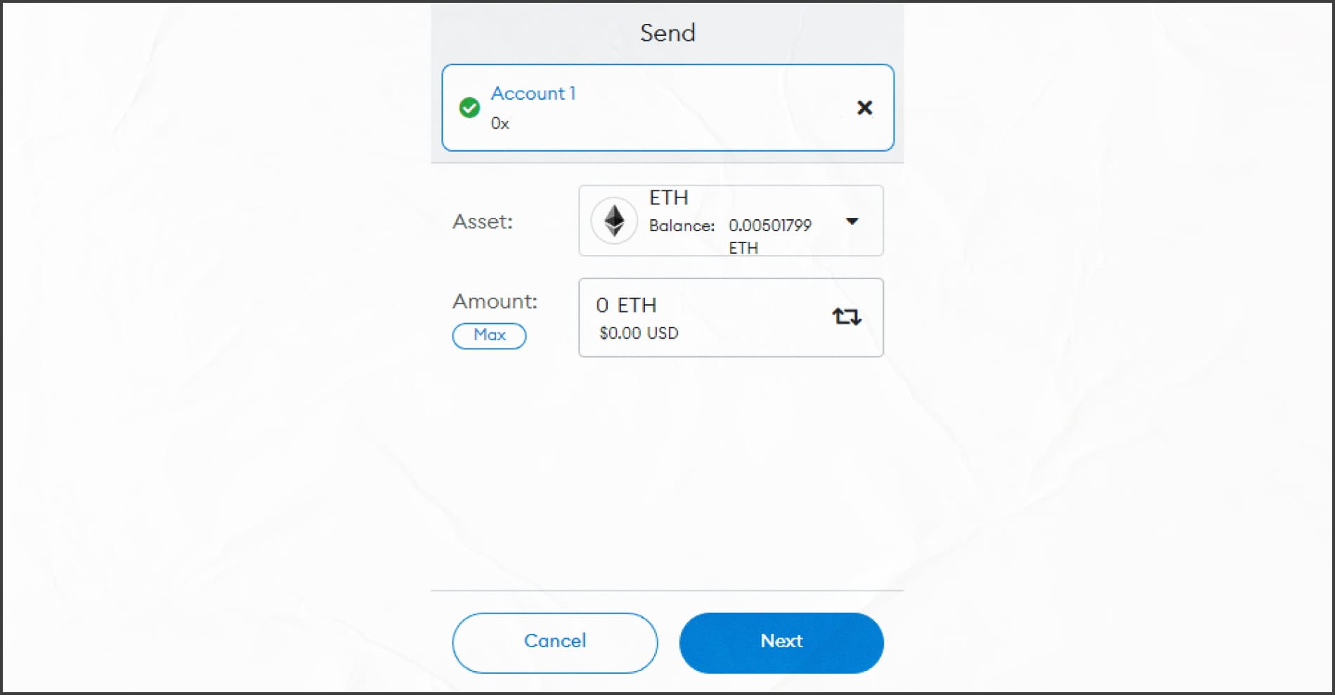 Cách gửi token qua MetaMask. Bước 1. Ở dòng trên cùng, nhập địa chỉ nơi gửi và chỉ định số ETH chúng tôi muốn gửi. Sau khi nhấp vào Tiếp theo: