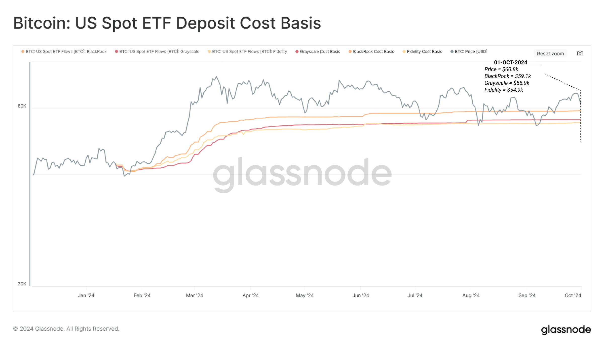 此外,2024 年初推出的比特币现货 ETF 可以看作是一个重要的催化剂,为 2024 年 3 月创下的 ATH 奠定了基础。考虑到领先的比特币现货 ETF 基金的平均购买价格,成本基础在 56,000 美元至 60,000 美元之间。值得注意的是,在此期间,市场很好地吸收了供应,每当比特币回调至这一范围时,价格就会大幅回升。这强化了以下论点:美国比特币现货 ETF 的成本基础已在 60,000 美元左右建立了强大的宏观支撑区。