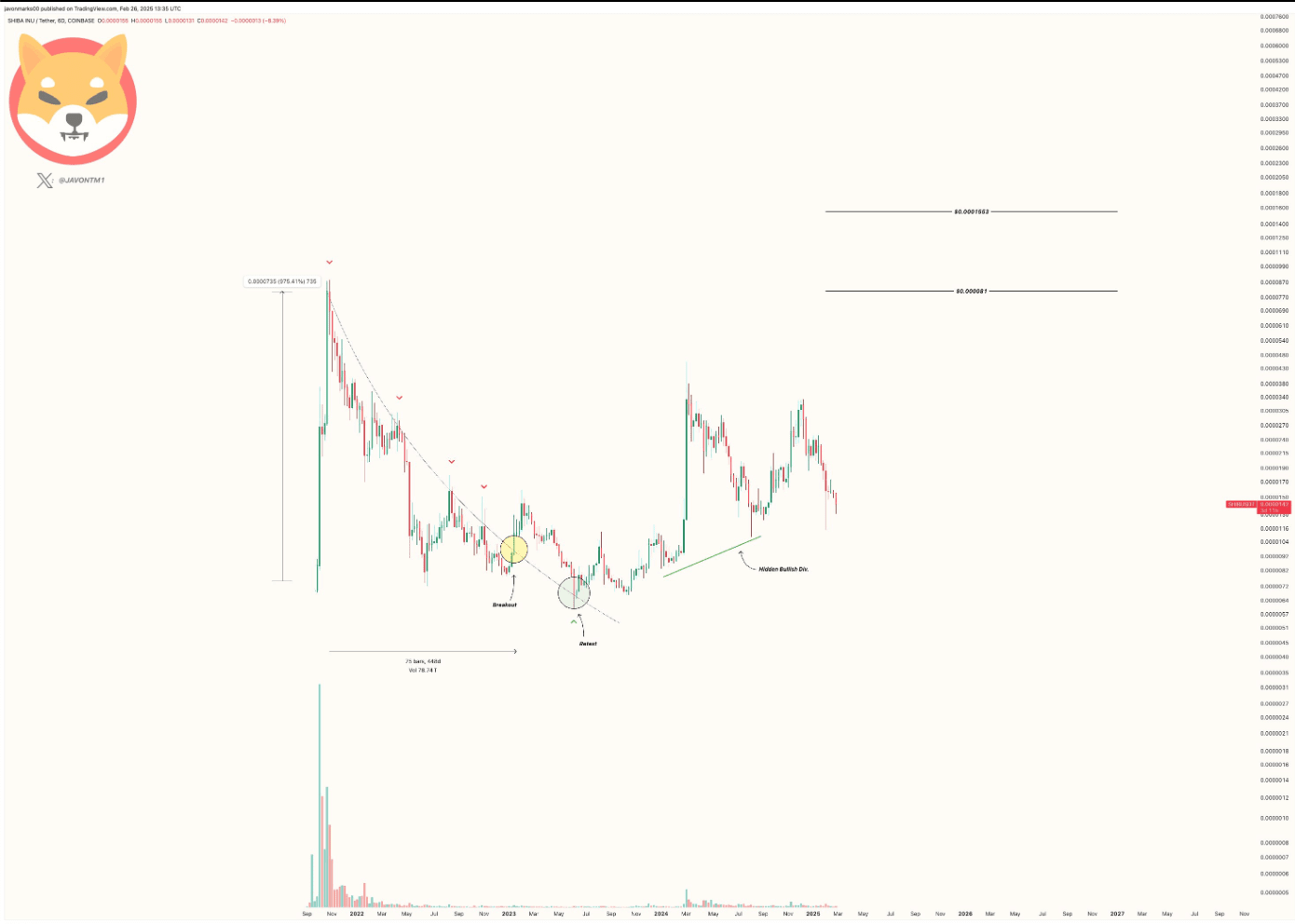🔍 加密分析师贾冯·马克斯指出,SHIB仍然保持着2022年底/2023年初的关键突破水平。根据历史趋势,他预测将上涨450%,预计SHIB将达到$0.000081。