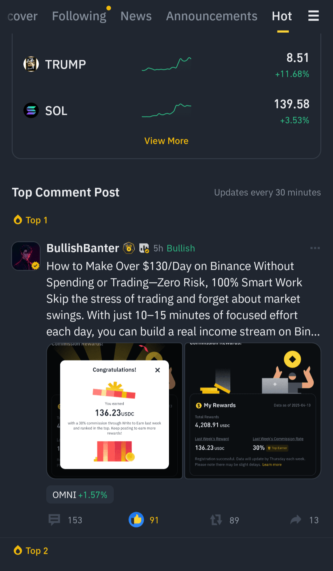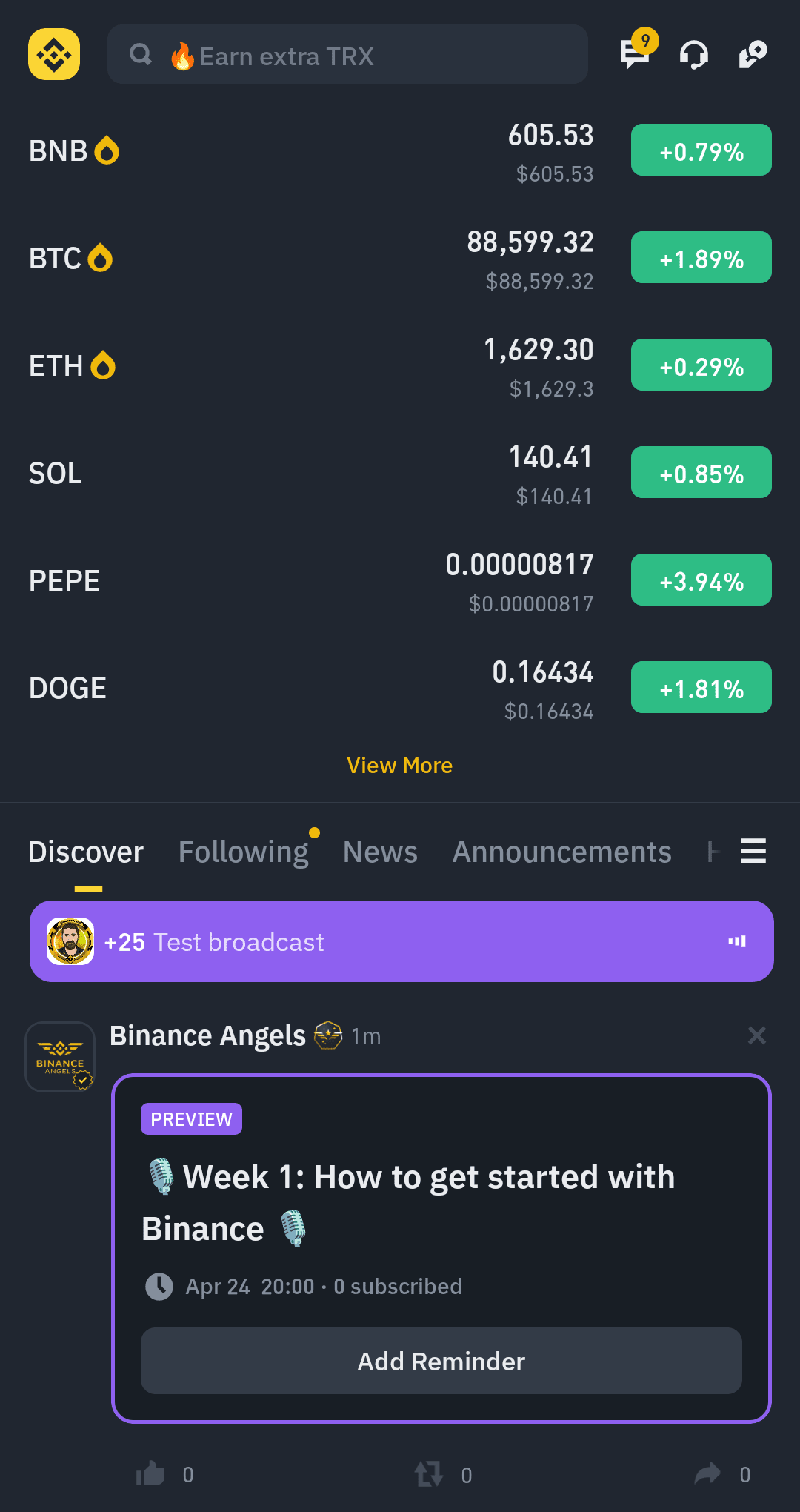 你不需要离开 Binance 就可以使用它。所有内容都在这里——交易、阅读、学习和发布。