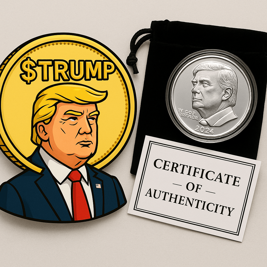 除了数字资产外,特朗普还通过推出一系列价值100美元的纪念银币进入了实体收藏品市场。每枚硬币由一盎司0.999纯银制成,一面是特朗普的肖像,另一面是白宫,并附有“我们信仰上帝”的字样。