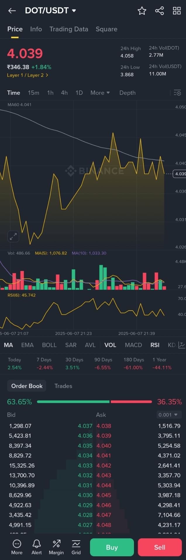 Polkadot ($DOT ) 当前交易价格为 $4.04,反映出过去24小时内上涨了1.76%。