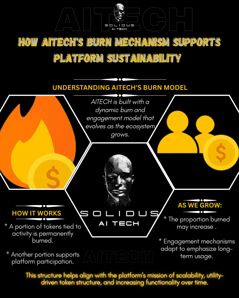 每当有用户或平台活动时,一部分$AITECH 代币会被永久销毁——减少供应并提升长期价值。