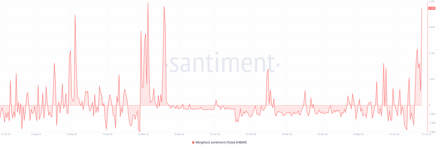 HBAR ETF的消息和过去一周50%的上涨也使市场情绪达到自12月初以来的最高水平,表明围绕该代币有很多积极的讨论。这可能增加购买压力,从而进一步推动HBAR价格上涨。