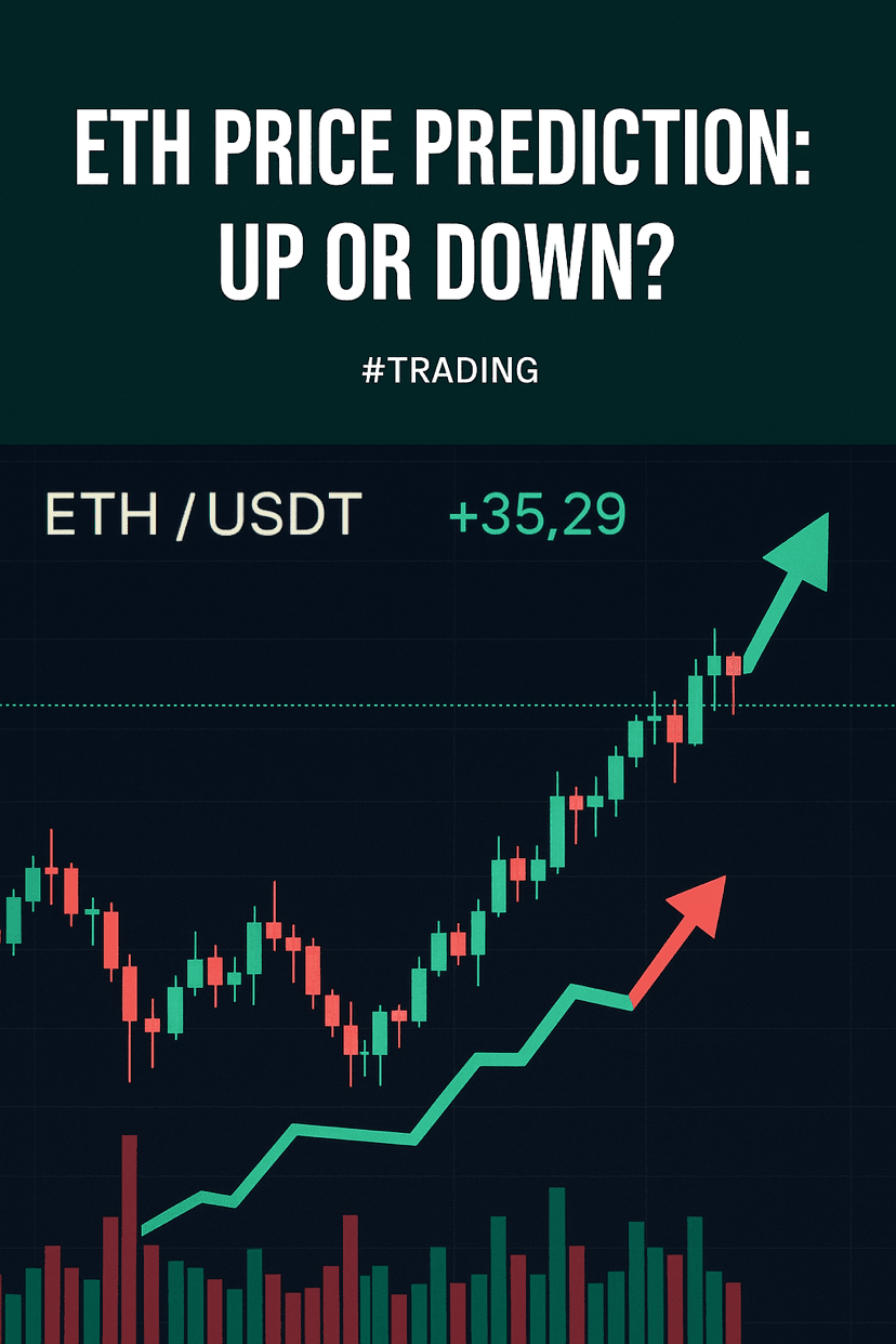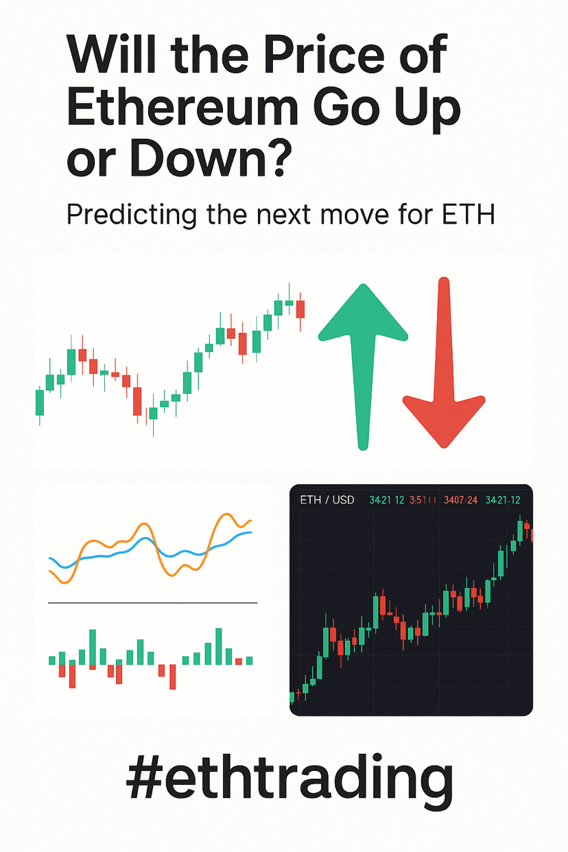 1. 封面图像:“ETH价格预测 – 上涨还是下跌?”(带箭头和蜡烛结构的清晰趋势分析)