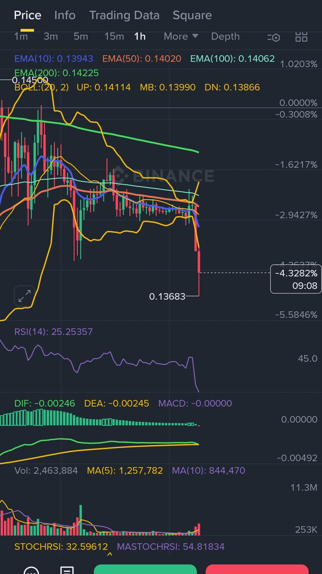 - 价格跌破所有关键 EMA (10/50/100/200)。