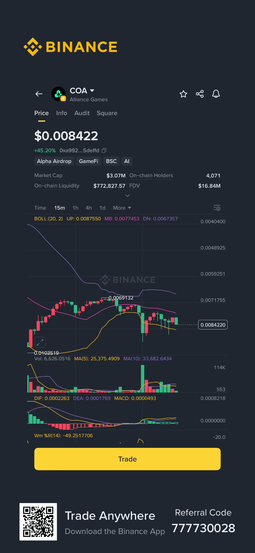 虽然技术指标令人鼓舞,但重要的是要关注项目本身。代币COA被归类为“GameFi”,即“游戏金融”。GameFi是一个新兴行业,将区块链技术与游戏结合在一起,使玩家能够赚取加密货币和NFT。这个模型通常被称为“玩赚”,吸引了大量投资和用户采用。联盟游戏代币通过在这一领域运营,正在进入一个具有巨大增长潜力的市场。