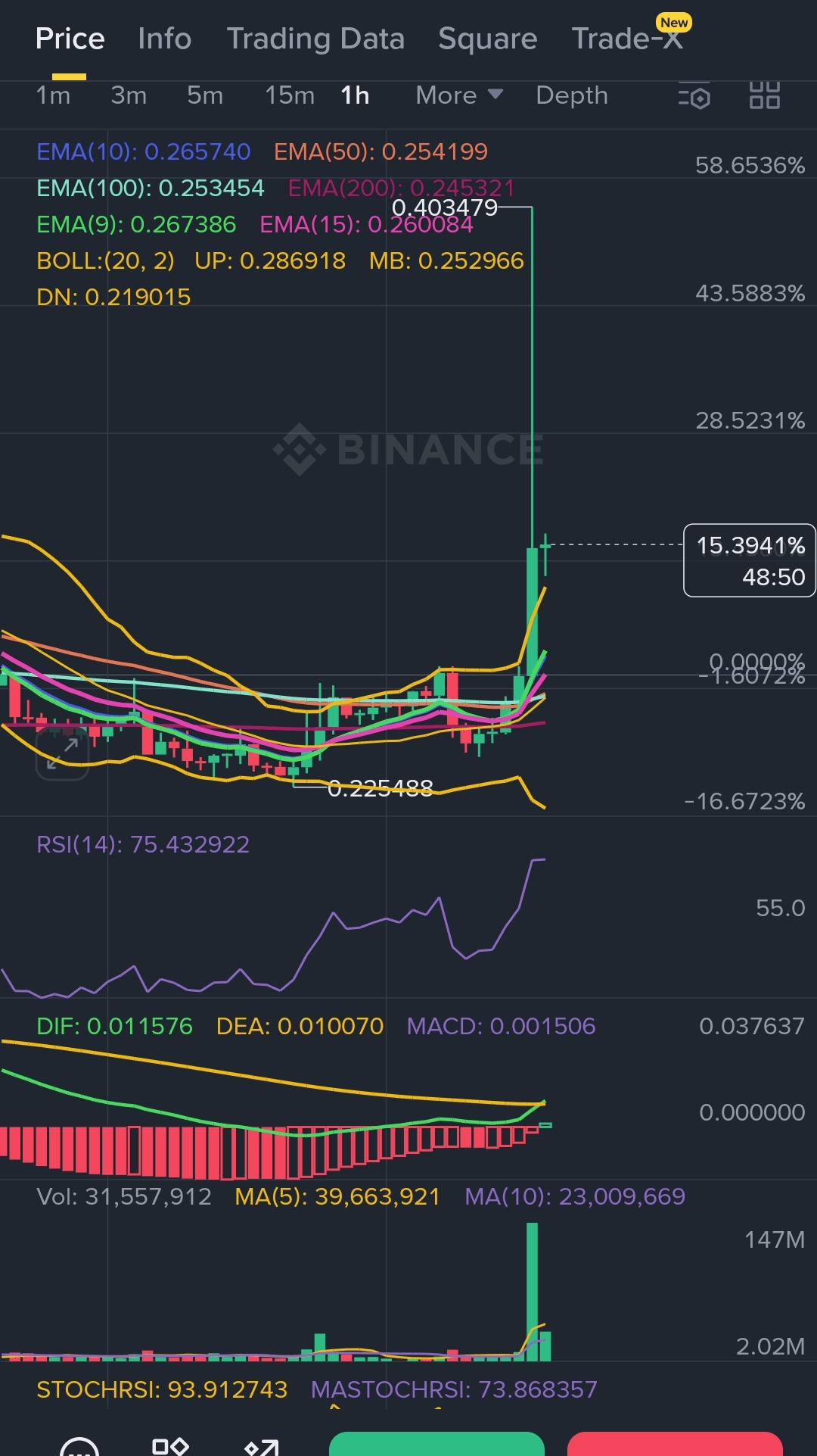 · 成交量:巨大的成交量激增!📈 成交量超过193M,显著高于MA(5)和MA(10)。这是一个“成交量突破”,确认价格移动是合法的,并且有巨额资金流入,而不是虚假突破。
