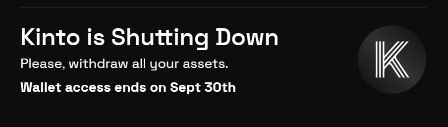 一个以太坊第二层项目和模块化交易所,Kinto 在一系列团队无法解决的问题后将关闭。该项目表示将于 9 月 30 日停止运营,以结束服务并尝试将能返还给用户的部分归还。该决定是在 7 月发生重大安全漏洞以及筹集紧急资金未能成功之后做出的。