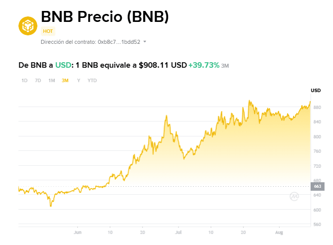 加速和新纪录(7月到9月):BNB以稳定的表现超过800美金,达到了908.11美金,在三个月内累计上涨超过39%。