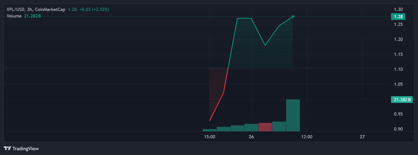 图表确认了这种积累,$XPL 突破了下行趋势,并在1.27美元的障碍上方——一个关键的看涨触发点。