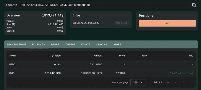 随着势头的增加,钱包0xF555也参与其中,将600万USDC转换为570万$XPL 以每单位1.05美元的价格。