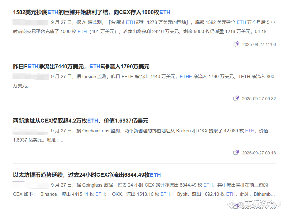利多埋伏:同期两个新地址从Kraken/OKX提取4.2万枚ETH(价值1.69亿美元),链上活跃度骤增!结合24小时CEX净流出6844枚ETH的数据,说明聪明资金正悄然吸筹。