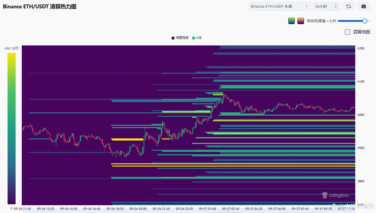 反之,若三次冲高失败,3918支撑位将迅速告破,空头会直指3822强支撑(近期清算热力图显示该区域存在大量多头杠杆,一旦跌破将触发连锁爆仓)。