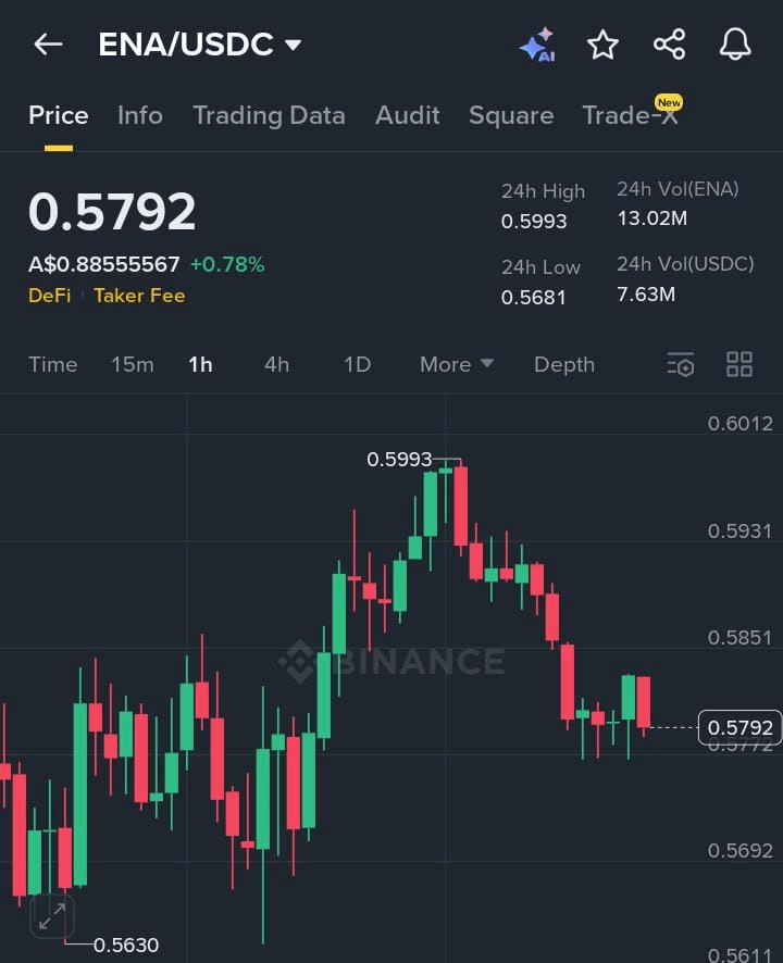 ENA 正在显示出强劲的市场活动,吸引了交易者的注意。该币目前交易价格为 0.5792 USDC。今天触及 0.5993 USDC 的高点和 0.5681 USDC 的低点,显示出稳定的动量和上升的购买压力。交易量超过 13000000 ENA 和 7600000 USDC,市场正发出短期和长期交易者都增加了兴趣的信号。