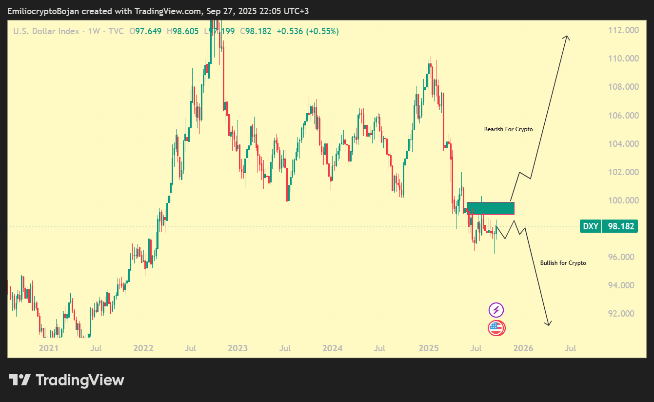我一直在听@CZ ,他的看法很简单:加密周期可能不再重要了。也许结构似乎已经发生了变化。现在,传统股票持续上涨,黄金和白银正在创造新的历史高点,DXY正在向100逼近。如果它强势收复这个水平,历史表明它可能会大幅反弹——而这通常会影响加密货币。
