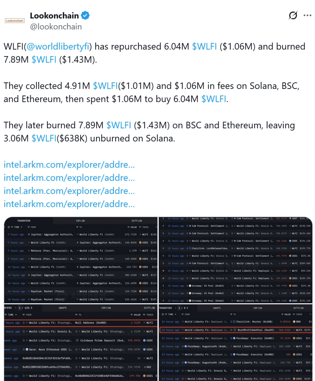 💸 WLFI 在设置社区批准的超级燃烧之前,从市场上抢购了价值 $1.06M 的代币并烧毁。这一大胆举动恰逢上个月价格急剧下跌,给市场带来了震荡。
