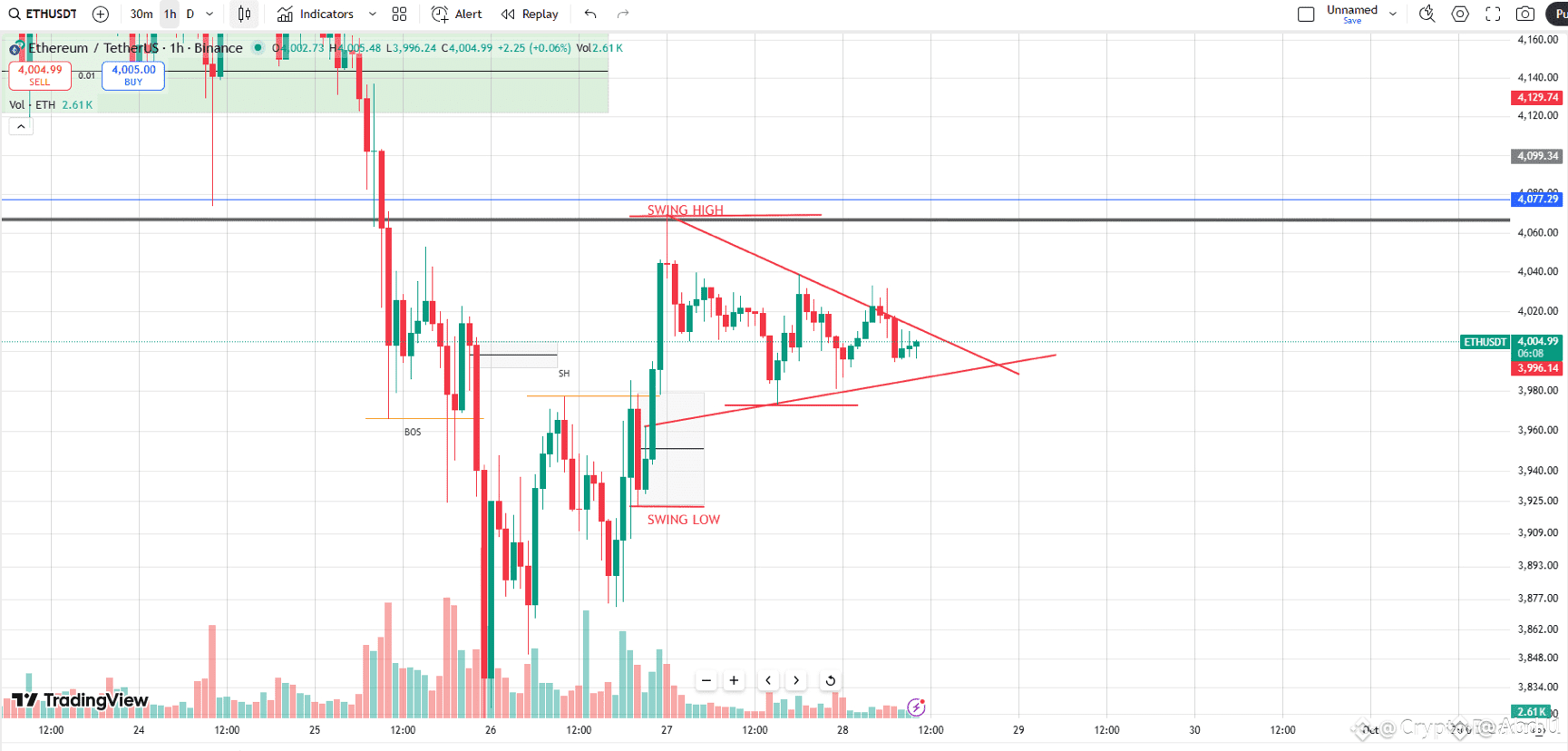 On the 1-hour chart, $ETH just faced rejection at a key resistance level, and the higher time frames remain bearish. This points to opportunities only on the short side. The market is showing heavy consolidation, which often precedes a sharp move downward.