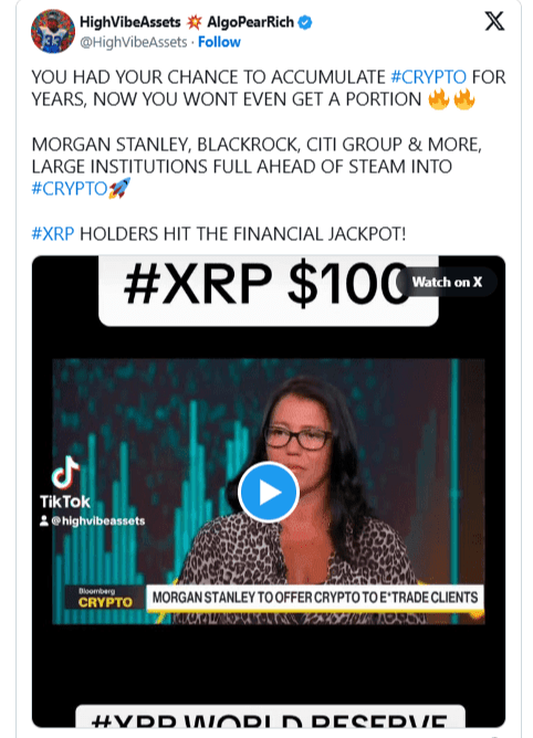 通过知名平台如E-Trade整合加密货币,摩根士丹利不仅在扩大访问,还在创造一个让以效用驱动的资产如XRP可以超越投机而获得认可的环境。