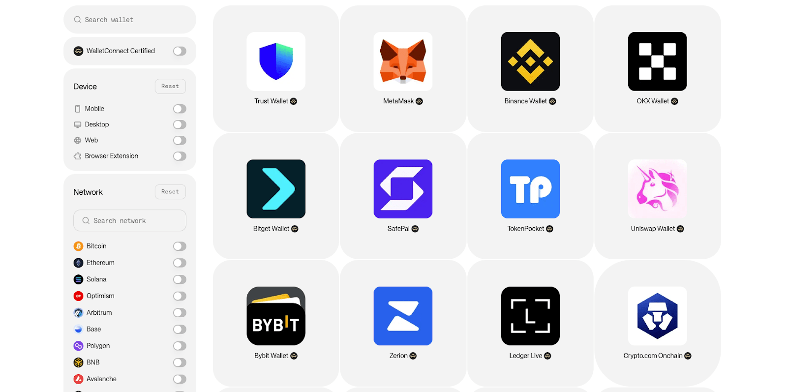通用兼容性:支持超过 600 个钱包,并连接到超过 150 个区块链网络,包括以太坊、Solana、Polkadot 和比特币,确保广泛访问。