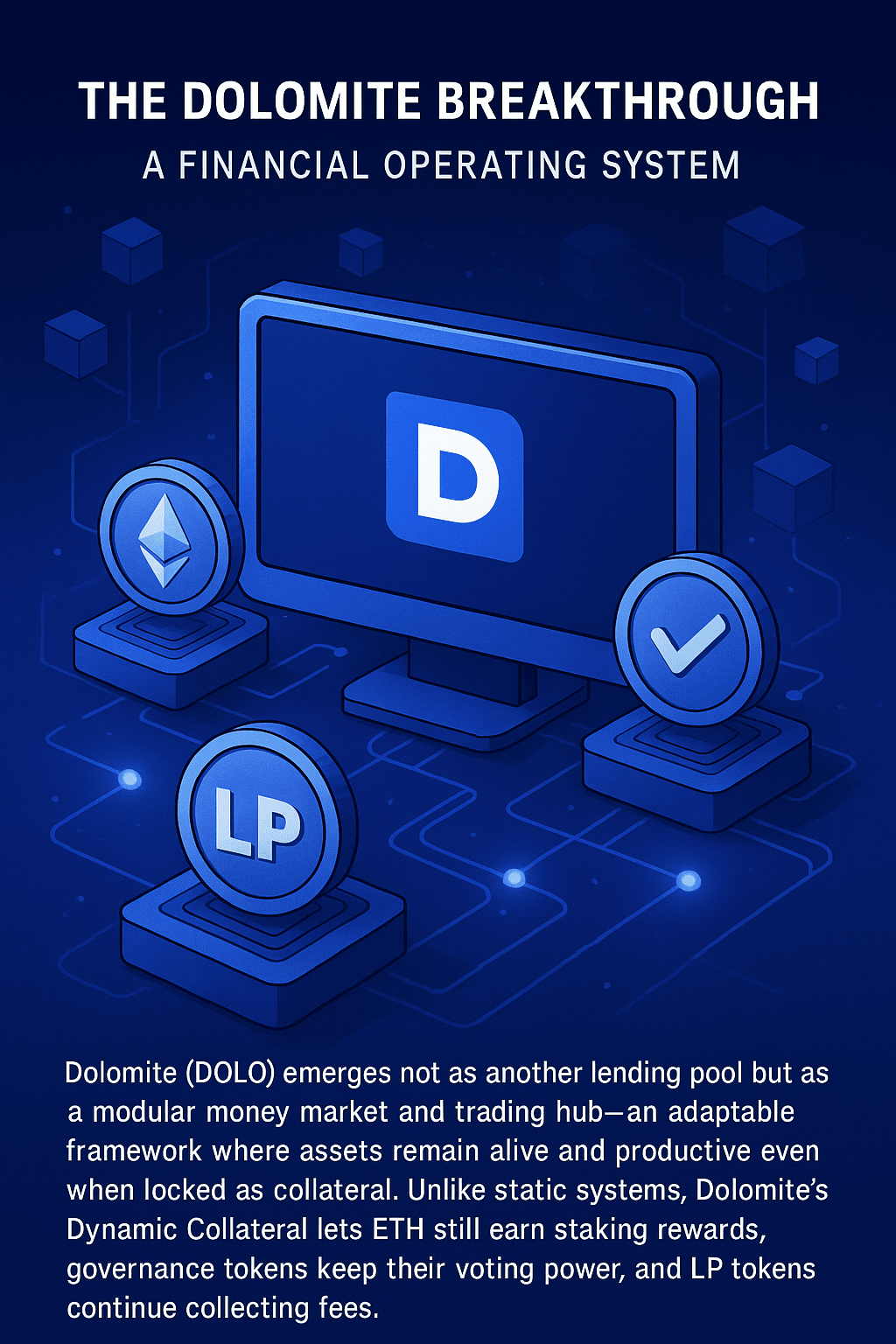 Dolomite (DOLO) 不再是一个普通的贷款池,而是一个模块化的货币市场和交易中心—一个灵活的框架,让资产即使在作为抵押品锁定时仍然保持活力和生产性。与静态系统不同,Dolomite 的动态抵押让 ETH 仍能赚取质押奖励,治理代币保留投票权,LP 代币继续收集费用。