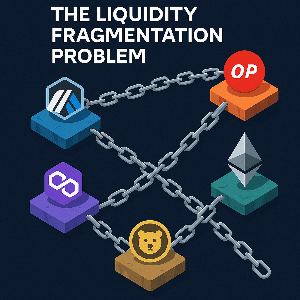 在 Aave 或 Compound 等协议中,抵押资产进入了冻结状态。用作抵押品的 ETH 无法再质押,LP 代币停止赚取费用,治理代币失去了发声权。同时,流动性在链间碎片化—以太坊、Arbitrum、Polygon、Optimism—每个链形成了自己的孤岛。结果?一个承诺自由的系统却运作如同资本监禁。