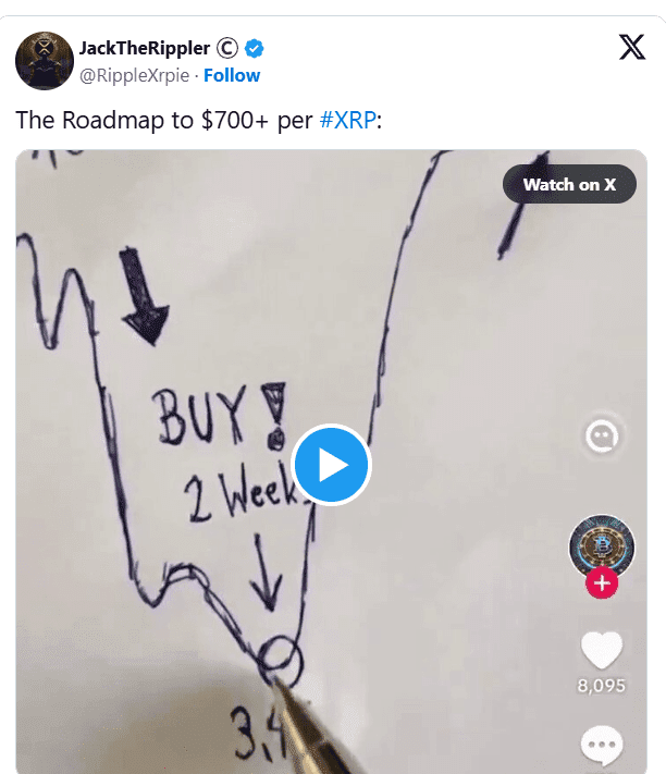 数字资产从几美元跳跃到数百美元的想法,如同少数市场故事一样,激发了人们的想象力。JackTheRippler在X上新分享的路线图正是如此,展示了XRP的一个引人注目的价格旅程,值得更仔细地研究。