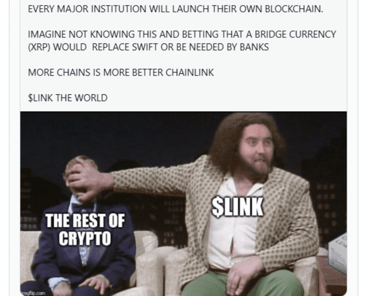加密社区迅速做出了反应。有些人认为SWIFT的举措是XRP最大卖点的崩溃。特别是Chainlink的支持者指出,机构更愿意建立和控制自己的系统,而不是采用像XRPL这样的第三方帐本。