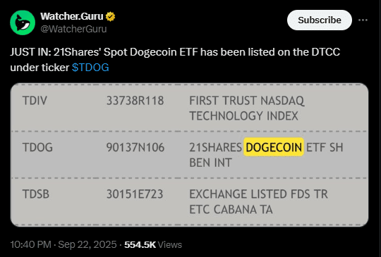 21 Shares 的现货狗狗币 ETF 最近上线 | 来源: X