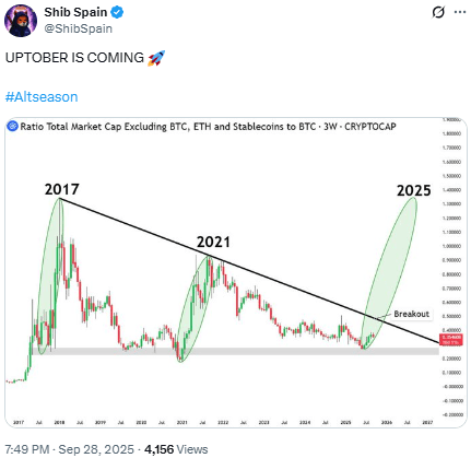 2025年10月以类似的方式开始——在这个月的头几个小时内,SHIB 上涨了 +0.56%。分析师和社区都希望随之而来的是更大规模的反弹。