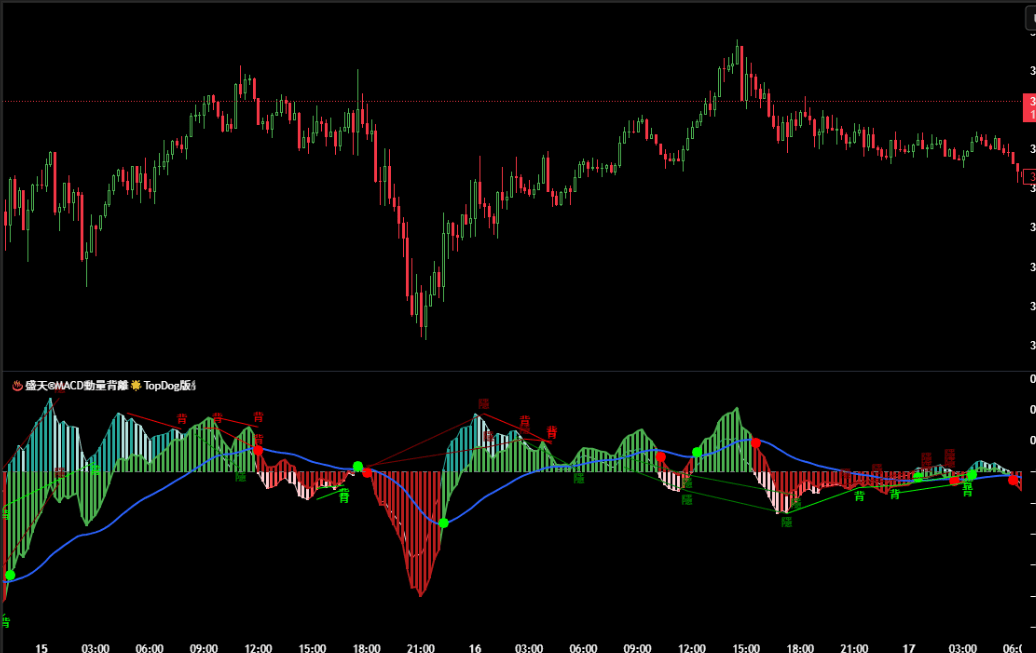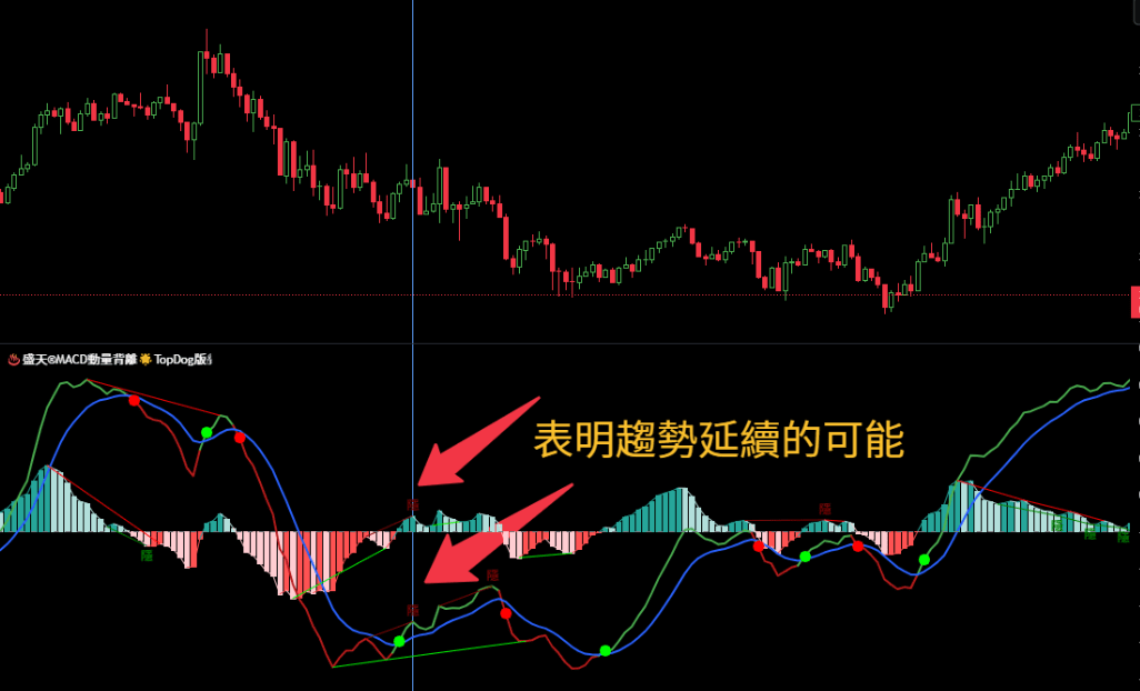 (🔵➤反轉交易場景:結合 Top Dog 模式的背離信號(標籤“背”或“隱”),識別潛在的趨勢反轉。