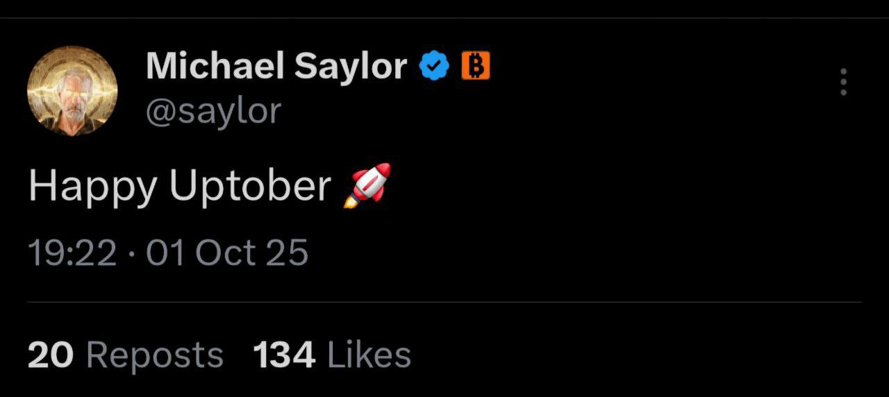 ⚠️ 最新消息:Michael Saylor 在 X 上说:"快乐的十月。🚀"$SOL $BTC $ETH