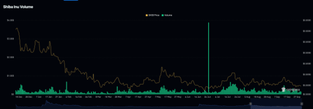 数据显示,Shiba Inu 的日成交量在九月份平均约为 2 亿美元,这与前几个月相比相对较低。这也与参与度的下降和市场上盛行的看跌情绪相吻合,尤其是在月底时。