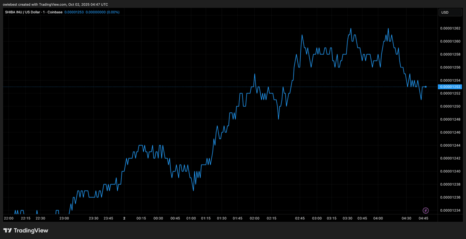 柴犬币价格在周三上涨超过5%,以绿色开启了十月的新月。这并不是由于与这个表情币独特的任何发展,而是由于比特币价格的快速上涨,带动了大部分加密市场。然而,在经历了一个阴郁的九月之后,这是一种受欢迎的变化,当时柴犬币价格跌至$0.000012以下。但随着这次复苏的推进,我们来看看交易量以及这些水平指向什么。